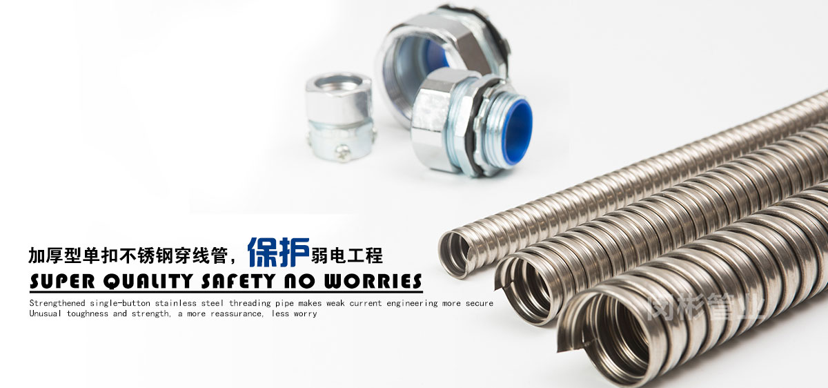 除此之外,公司還致力于金屬軟管接頭,普利卡管,普利卡接頭,不銹鋼穿線管的銷售。公司本著品種多、質(zhì)量?jī)?yōu)、服務(wù)好的宗旨,不斷開發(fā)、創(chuàng)新產(chǎn)品,以滿足日益發(fā)展的市場(chǎng)需要。產(chǎn)品主要包括:金屬軟管接頭 ,橋架接頭,塑料軟管接頭,AD接頭,不銹鋼接頭,普利卡接頭,包塑金屬軟管,不銹鋼軟管,不銹鋼編織軟管,普利卡軟管,尼龍軟管,塑料波紋管,尼龍拖鏈等機(jī)床配件。產(chǎn)品廣泛應(yīng)用于建筑、機(jī)床、鐵路、車輛、化工、汽車、監(jiān)控、建筑裝修、建筑裝飾、建材、裝修裝飾等行業(yè)。上海閔彬管業(yè)有限公司高質(zhì)量包塑管在實(shí)際使用中多家工程單位的認(rèn)可、使用與推廣。
